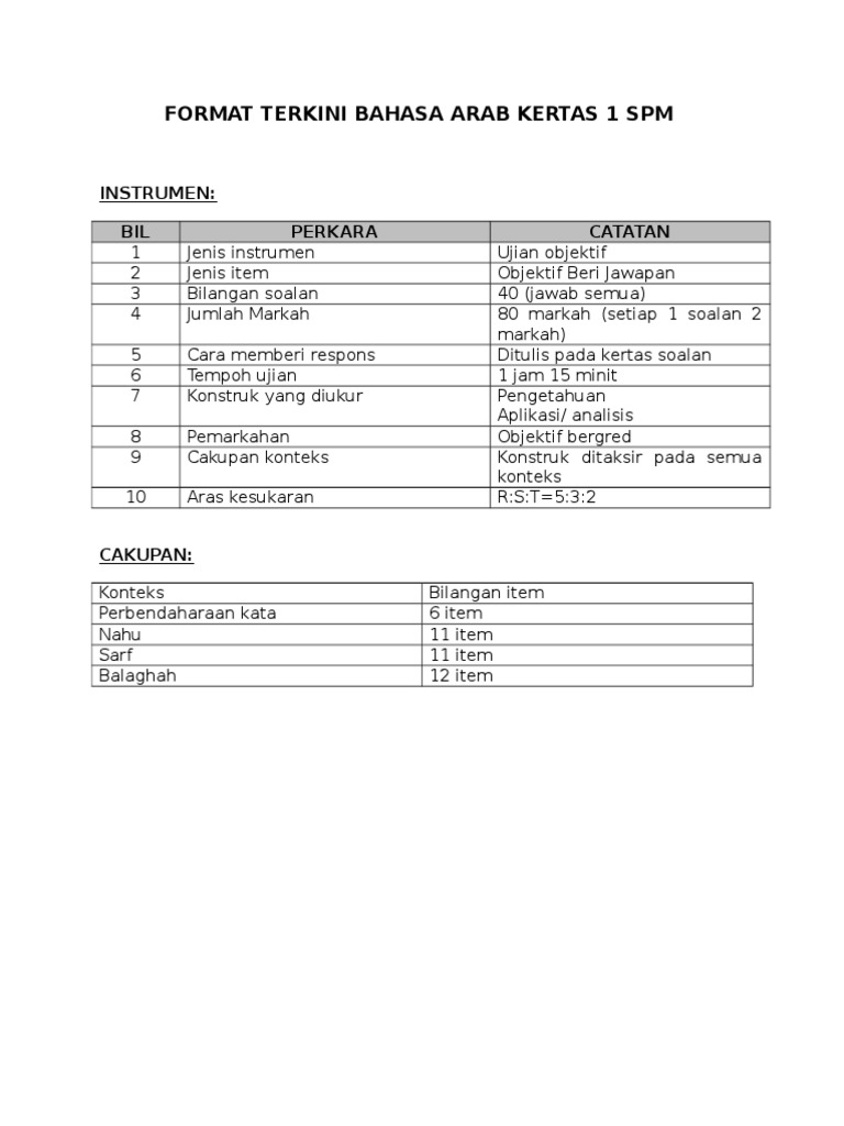 Format Terkini Bahasa Arab Kertas 1 Spm Pdf
